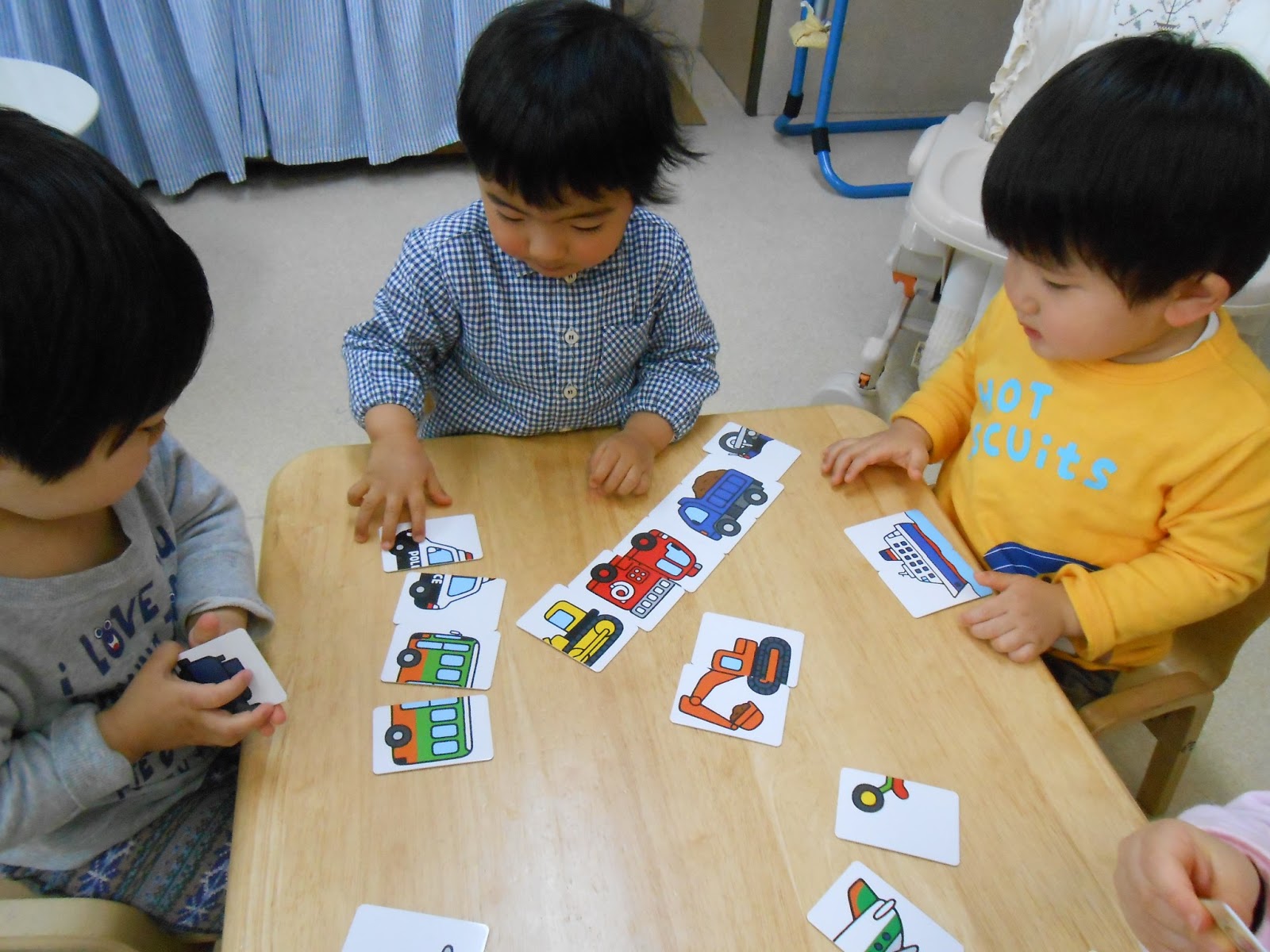 カードあそびです。2枚のカードを組み合わせて、乗り物にします。